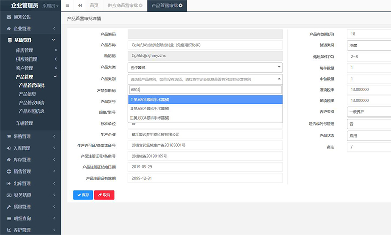 依據(jù)法規(guī)定制,設(shè)有供應(yīng)商/產(chǎn)品/客戶首營、修改等審批流程,同時管理自身經(jīng)營范圍匹配上下游業(yè)務(wù)單據(jù)。