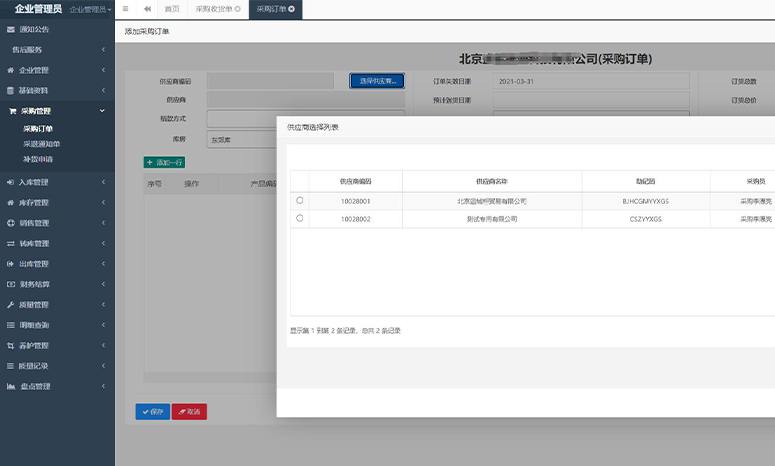 采購訂單與采退訂單,系統(tǒng)自動監(jiān)控雙方經(jīng)營范圍及批件效期,并在生效時形成采購記錄。支持UDI編碼掃碼入庫。